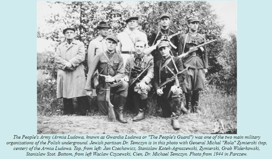 According to Dr. Michael Temczyn (Temchin), a Holocaust survivor and physician, "A Jew had to be very careful not to fall into the hands of the so-called 'National Armed Forces' (NSZ). These were Polish Fascists who hated Hitler but shared his ideas about Jews." Dr. Temczyn joined a group of Russian and Polish partisans in late 1942 in the area around Hrubieszow. They knew he was Jewish and accepted him anyway. Later, this group disbanded and those who remained joined a group led by Konstanty Mastelarz. This was among the first groups to join the Armia Ludowa (The People's Army), in May 1943. Temczyn had little difficulty due to his intellect and reputation as a skilled physician (source: “The Witch Doctor” by Temchin.)