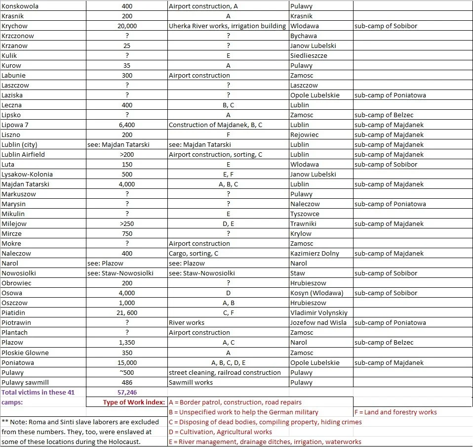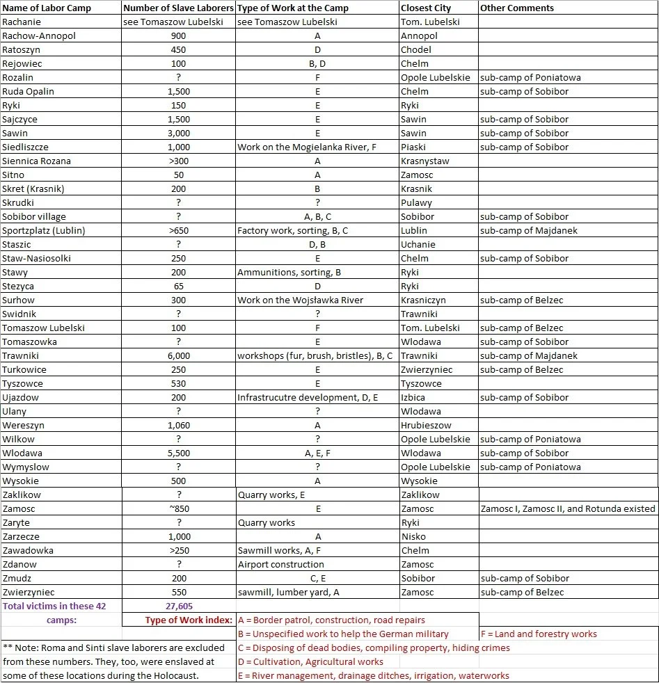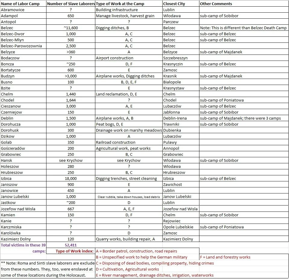 Listing of Labor Camps in the Lublin District During the Holocaust