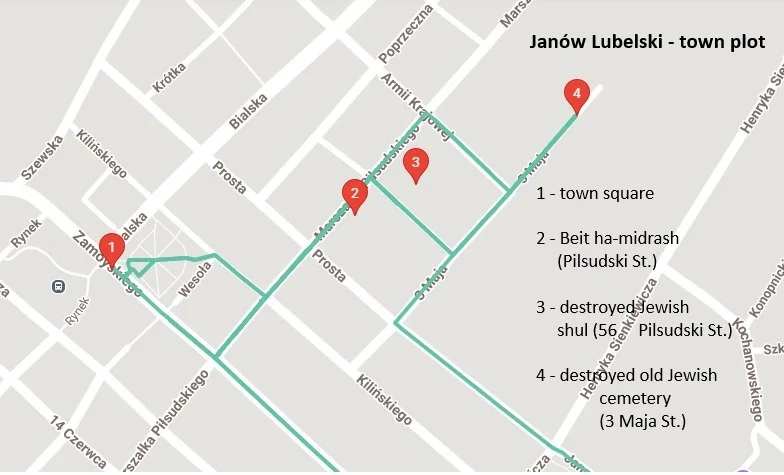 Jewish cemeteries were established in Janow Lubelski in 1661 and in the 1820s. The first cemetery was near 3 Maja Street. The second was founded at Przborow street (now called Wojska Polskiego) and was larger. There is no trace of either cemetery today.